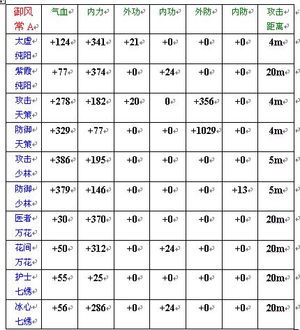 2.表内少林派的内外防是在5重般若诀下计算的,5重般若为外防+700,内防+25,更高层,满级为10重