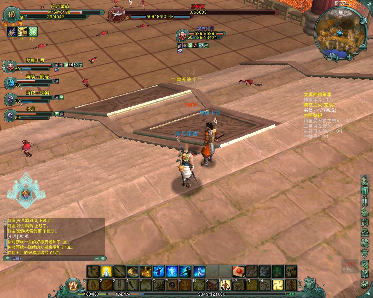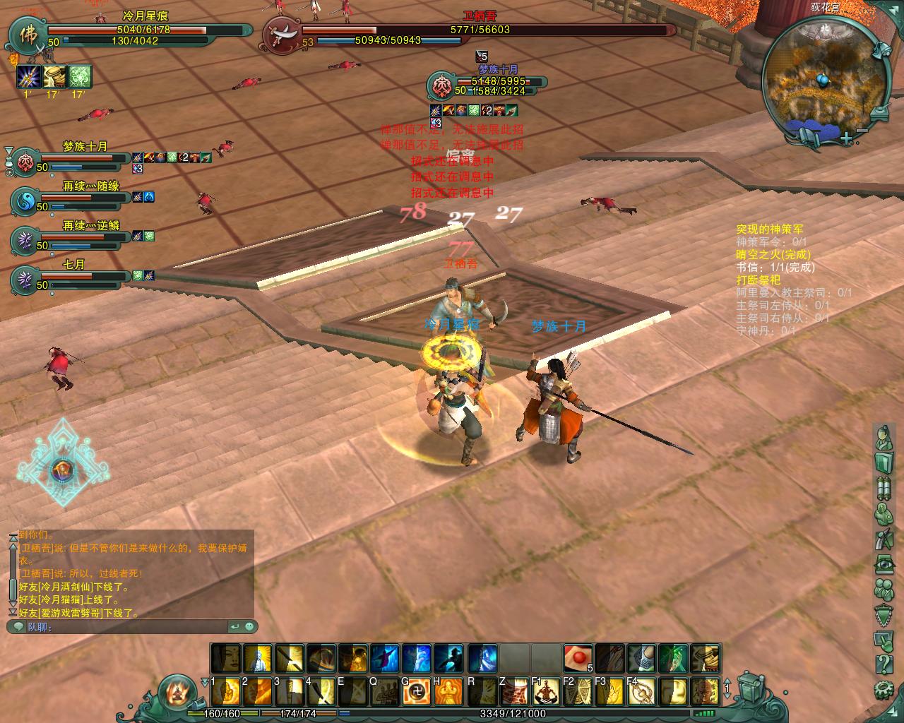 二号BOSS.中间那个BOSS,是3个,一个教主,二个护卫。它们三个站在成一个三角形,忽然三个BOSS开始对话(用的四川话,我家乡的话,备有亲切感)在中间的圆盘上.打段祭祀才能杀死!注意别站中间的圆盘上