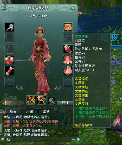 到目前为止,这是掌门叶MM发给所有七秀同学的第二套校服,人均一套,整齐划一,妩媚美丽……话说为了这套衣服,折腾了好几天啊。。。现在发给大家看看