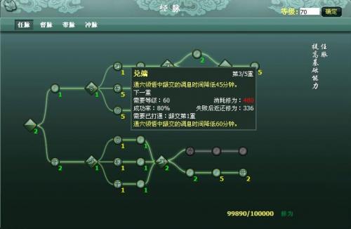 1.首先,把经脉中的"任脉"中的"巨阙"这个穴位点满,这个穴位点满后,再点穴位就降低20%的修为.等于多了2000点的丹田可以加.这个性价比非常好.把中庭加满.