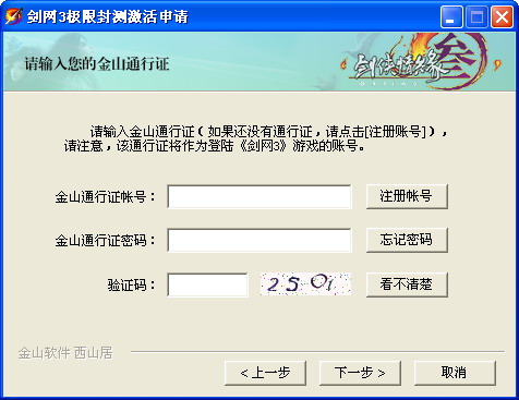 注:一个金山通行证只能激活一次,且已激活的2测通行证同样不可再次激活。