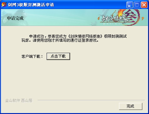 4.如果您的机器配置符合需求,至此,您的《剑网3》极限封测激活申请已经成功。