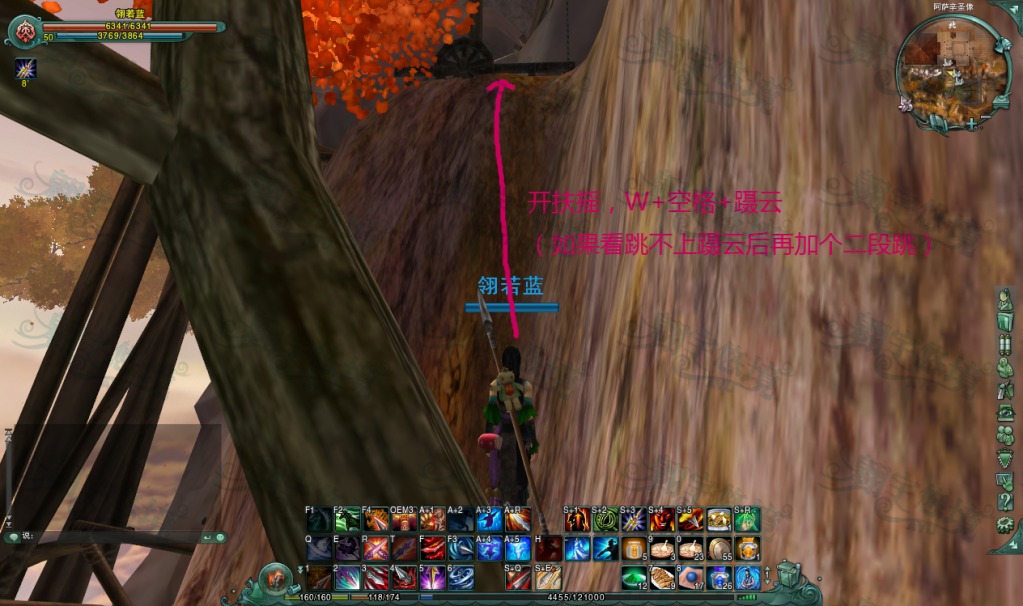 上树,图示位置处,可能起跳的时候会有滑落树干的现象不影响跳跃结果。