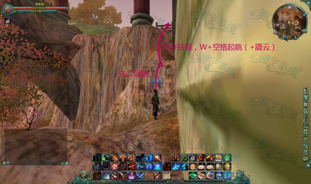 第一个山头,不是纯阳跳不过了,沿着山脚跑到旁边两个怪那儿听得 叮 一声警示,赶紧聂云冲刺过去,然后沿着左边边沿走。