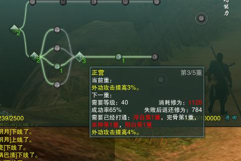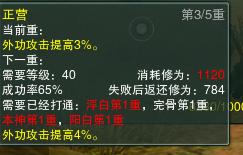 如图 :“正营”:当前第三重,需要打通:浮白第一重,完骨第一重,本神第一重,阳白第一重。”但是实际上 我们只需任意打通'浮白’‘完骨’‘本神’‘阳白’任意一处穴道就可以打通“正营”了。其他如 加体质的“承浆”。加下线修为的“建里”。冲脉加内功攻击的“石关”等 虽然都要求打通2--4项前置穴道,但是实际上打通一处就可以了 。。。