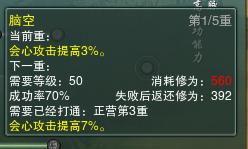 效果:带脉所有穴位打通成功率提高2%。 建里 - 等级2/5 - 消耗(900)点