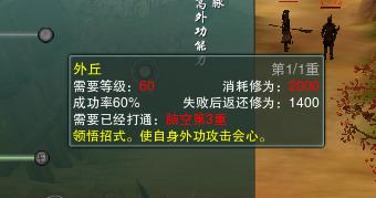 —— “外丘(60的领悟技能,使自身外功攻击必定会心--YY下 ,是不是每招出去必定会心呢?那不是爽歪歪...)
