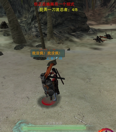 任务目标:让你捉弄海滩上的暗部上忍,当你把暗部上忍的血打到还剩一半的时候,就可以用兔兔给你的兔兔草作弄他们。不要打死,打死的话就不算完成任务。