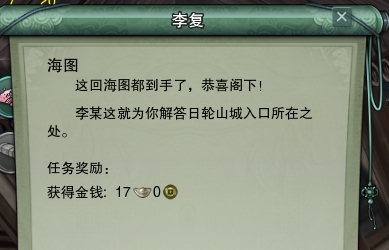 当你接到海图任务后,接着可以在李复那里接到【易装扮寇】【海图之一】【海图之二】。