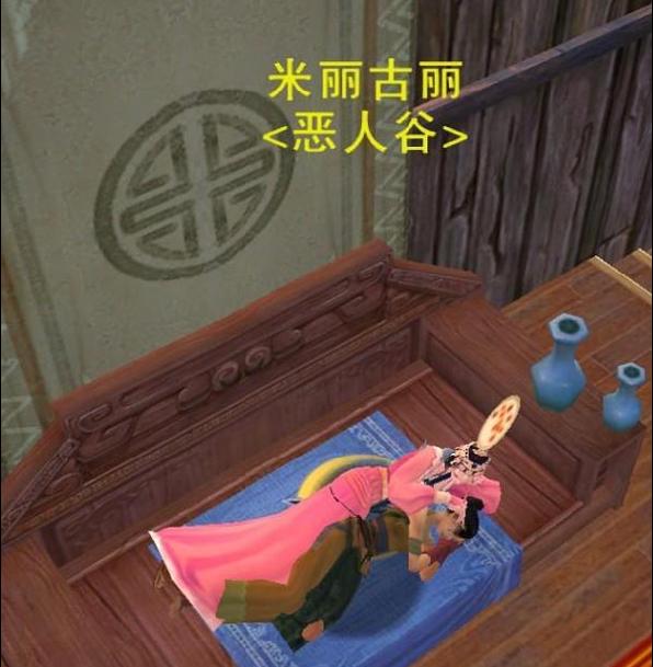 昨日,一位玩家来到恶人谷醉红院,看到美丽的女NPC米丽古丽风情万种地躺在床上,不禁心生邪念……
