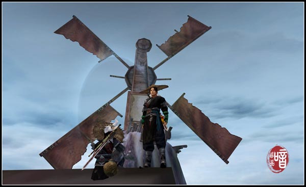 某日,与师父在恶人谷闲逛,看到那只大风车,就想爬上去。结果,努力了粉久,还是没有上去。五重云梯也没办法,哈哈。