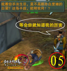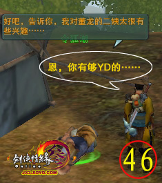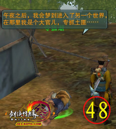 这个任务做起来并不复杂,有意思的是:有大量有趣的对话,当你拷问了20多次,终于得到所有任务答案时,假如你还不放弃,那么会有更多有意思的对话出现,到最后还会给你一个任务,剑三里我们叫隐藏任务,或者这便是通常游戏里的彩蛋了。