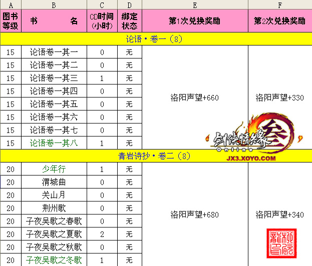 下图可证明一些书籍换取的变化过程,同时也说明游戏策划也一直在完善着阅读系统。