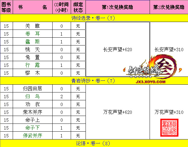 6、原来部份换物品的书籍需交第三次才是固定奖励,8月1日后全部统一为所有书籍交第二次即为固定奖励。