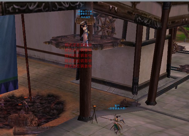 来到火药坊老2前了,大家上树吧,扶摇前条即可。上树后再慢慢移动到树枝前端,否则boss要脱离的。