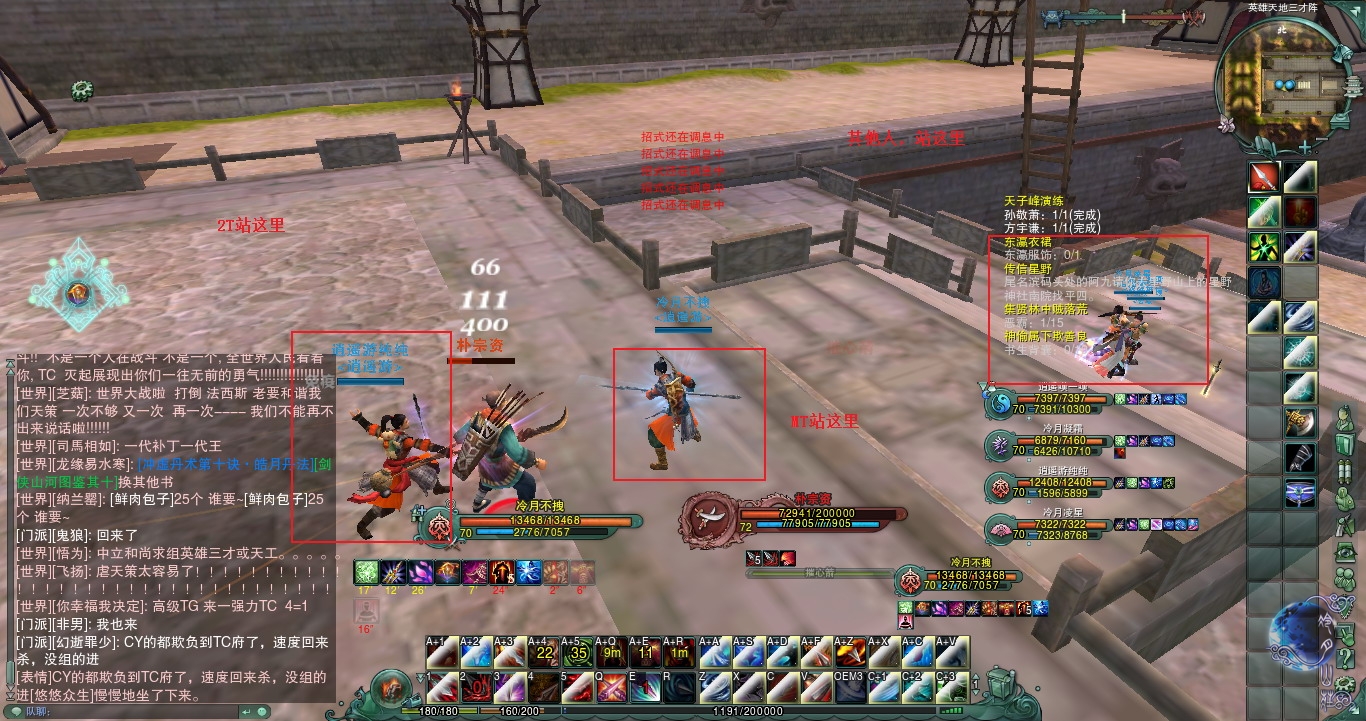 WH QX QC站在台阶上就可以。MT站在台子和台阶交线前一点,然后MT拉怪,AT站在BOSS背后。BOSS主要有2个技能,摧心箭,快速掉蓝,只打MT;神机箭,台子上开始落雷,治疗QC站的位置打不到BOSS发神机箭,2T就迅速跑到治疗那里躲着。很简单,没什么攻击力除了摧心箭会快速消耗MT蓝,WH QX在DOT消失后给MT加蓝即可。