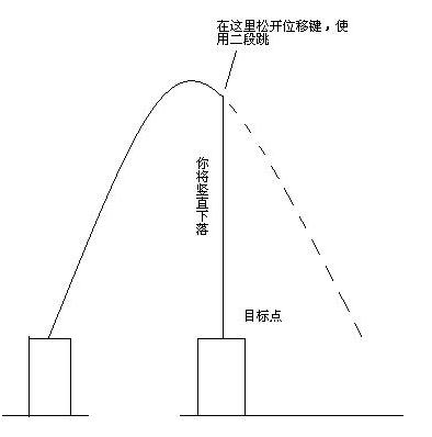 可能我这样说还有人不明白,这样,我举个简单的例子,你从一个高台上跳下去,在跳之前是按着前进(一般为W键)的,那么在起跳后,你的运动轨迹是一条抛物线,如果在空中的时候,你松开W键,,然后点空格键(即使用“踏云”),你会发现你的水平位置立刻就固定了,踏云(二段跳)之后,你是竖直下落的(当然,这整个过程,你都是没按W键的)。
