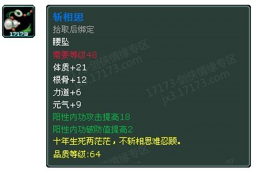 腰坠:荻花老二出,斩相思不错。还有恶人谷声望的腰坠,伤害更高点。