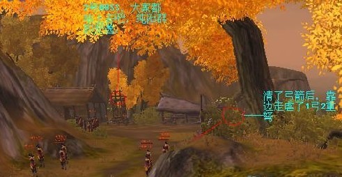 如果这里顺利。去1号BOSS路上只需要杀5个怪了。然后叫莫雨,纯阳拉走桥对面怪。一起上虐了1号,这里气纯只要注意解晕就行~