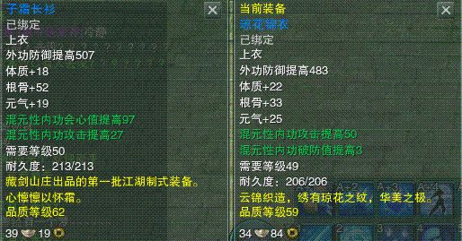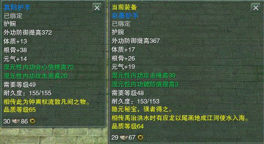 然后我在两个部位上的装备不同类型的装备,衣服和护手,都用暴击的或内功的: