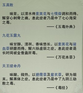 这是部分药方 具体的太常 我琢磨了半小时 总算把药草分清楚了 这样点一个女人 看她什么病 再去采药 就不容易出错了