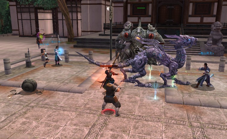 T拉好boss 注意不要帖治疗太紧 要被群到 龙有个扇型群体技能 所以要背对其他人