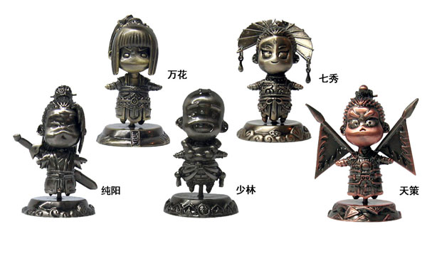 憨态可掬的五大门派金属摆件