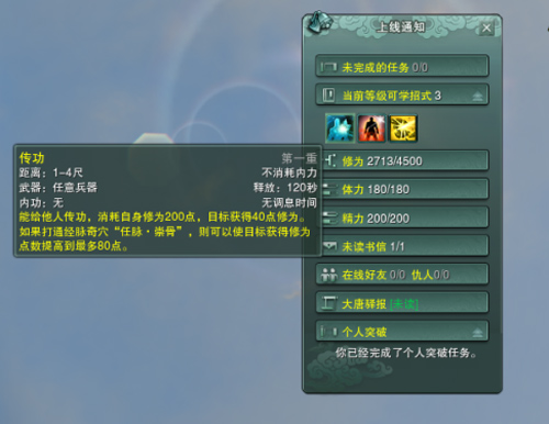 玩家们在观看武侠小说和影视剧的时候,都接触过这种情节,某某角色因为机缘巧合,得到了武林高人的内功传授,内力大涨,从而一鸣惊人。而以电影级画质表现和丰厚武侠内涵著称的《剑侠情缘网络版叁》(以下简称:《剑网3》),自然也会有传功的设定。双方在一定条件下,即可把自身的修为传给对方。