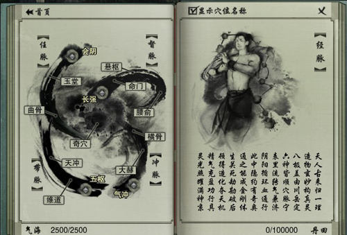 对武林中人来说,内功经脉是武学的基础。气海内的修为值是用来打通穴道的,打通成功后经脉值会被存储在丹田不可收回。经脉气海值在你离线的时候会增加,你的离线时间越长,积攒的修为值就越高,当然这个是有上限的,可以通过打通穴道来扩充气海上限。离线时间产生的修为值会存储在气海里。海内的修为值满了后便不再继续增长,也就是说你长时间不上线也是不行的。