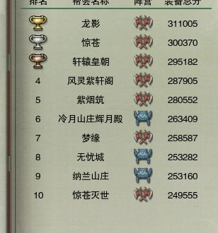 浩气方面,冷月山庄是浩气盟的大户,曾经50前期冷月山庄风光无限,官方合作工会、论坛合作的广告攻略、测试服积累的经验、庞大的人员,人数也是服务器工会之首(最辉煌的时候貌似800+)。起初估计会让很多人向往,但这也成就了冷月山庄劣势,由于冷月招人条件只重等级和数量,不重视质量,俗话说,林子大了什么鸟都有因为重视加入者的等级等客观原因而忽略素质给冷月山庄带来一副鱼龙混杂的界面。