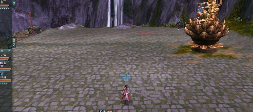 和尚主T,站莲花座上最大仇恨拉boss(如果仇恨拉不住,会像下面人放千叶佛手的攻击,此技能一般在5000-8000阳性内功伤害),空地4人,分两组,3人一组,1人一组,两组之间最大距离要在30码以上,离boss距离要在20码以内,以便跑位七秀很好的治疗。