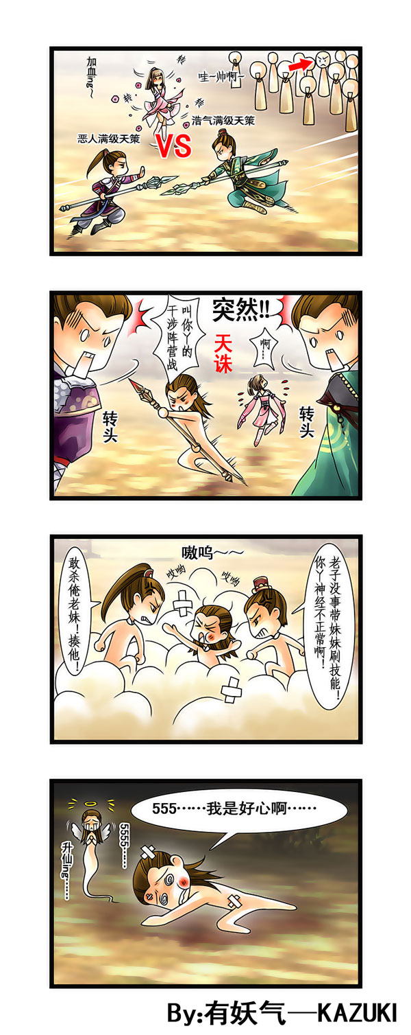 自从《剑侠情缘网络版叁》(简称《剑网3》)四格漫画推出后引起了玩家们的热烈反响,漫画灵感完全来源于《剑网3》,漫画的内容也是由《剑网3》中真实发生的故事演变而来,在作者“有妖气—KAZUKI”诙谐幽默的笔下更加富有戏剧性。其中很多《剑网3》的玩家为我们提供了大量的素材,在此小编由衷的感谢您的支持,本期小编又将给您带来什么新内容呢?