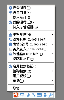 双击之后就会皮肤会自动安装在您的输入法中,当您安装了多个输入法后,如何切换皮肤呢?您可以点击输入法框体中的“菜单”选项,进入“设置属性”选项,如下图。