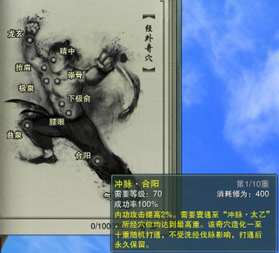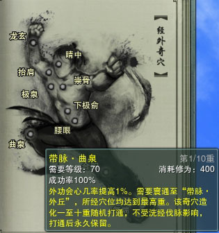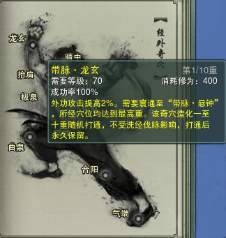 值得一提的是,当玩家洗经伐髓之后,普通的穴位效果清零修为点数返还气海值的90%,但是奇穴效果还是存在的哦!