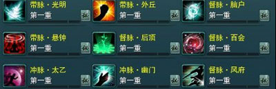 任意兵器可瞬间释放,不消耗内力,10分钟调息时间,领悟此招式后可使周围6尺内最多5个目标不能运功,持续4秒,可谓是克敌制胜的超强法宝!还有一招是先天功“督脉·风府”,消耗内力38,任意兵器可瞬间释放,10分钟调息时间,此招式的效果是使自身不受移动限制,持续10秒;与之相对应还有另外一招,“冲脉·太乙”任意兵器可瞬间释放,不消耗内力,10分钟调息时间,领悟此招式后使周围6尺内最多5个目标移动速度降低50%,持续4秒,两招配合使用,实乃是居家旅行杀人越货的必备招数!