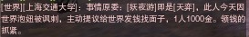 然而,“上海交通大学”一直没予正面回应,之后其不断刷屏“[妖夜游]世界频道泡妞糟讽刺,主动提议世界发钱找面子,1人1000金,请速领钱”。