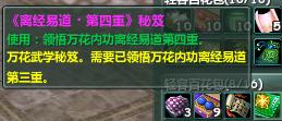 其中武功秘籍并非是增强技能威力的那种秘籍,而是增加熟练度或是学会第一重武功的秘籍,还有就是10种内功的第4重的秘籍书。