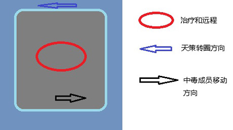 然后他会开始点名,中了毒的成员身上会有个类似于被定身样子的红圈,注意身上负面状态的持续时间,及时跑出去,伤害不高,七秀和万花丢上持续,避开天策的移动轨迹把毒放掉,开始是个小绿圈,后面会慢慢扩大。回来后基本轮到第二次点名可,如此重复。在日轮山城我们已经完美的训练过了,不是?