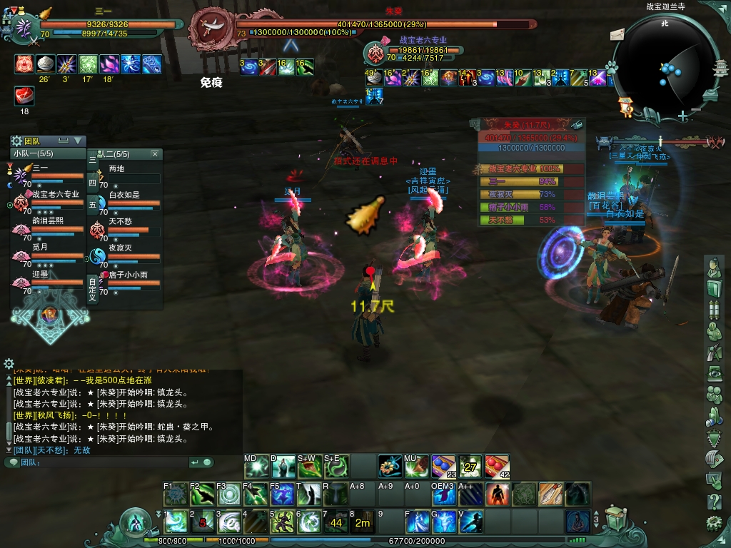 易经和尚,狂用【恒河截沙】技能给BOSS上减少百分50治疗量的DBUFF,其他同上。