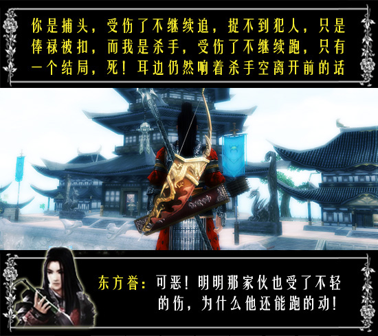 我知道自己受了伤,而且不轻,万花的内功伤害实在是厉害,可是我必须继续跑,而且不能停,因为一旦停下来,就会被他们追到。