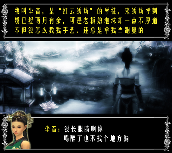 我叫尘音,真实的身份是公门中人,绣坊的学徒不过是个虚假的身份,目的就是为了接近杀手组织,接近凌云轩。