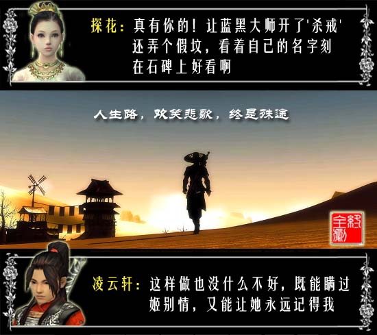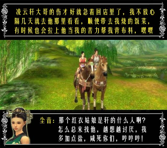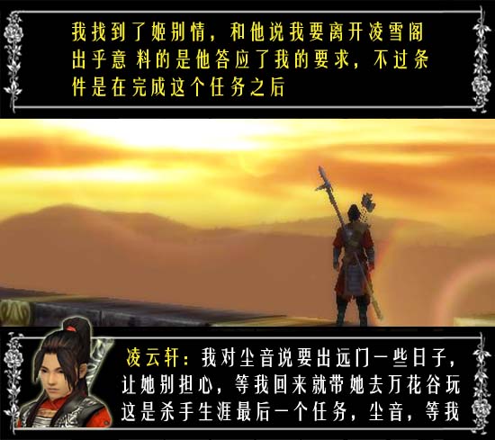 两人策马而去,大漠上隐约传来了凌云轩的歌声: