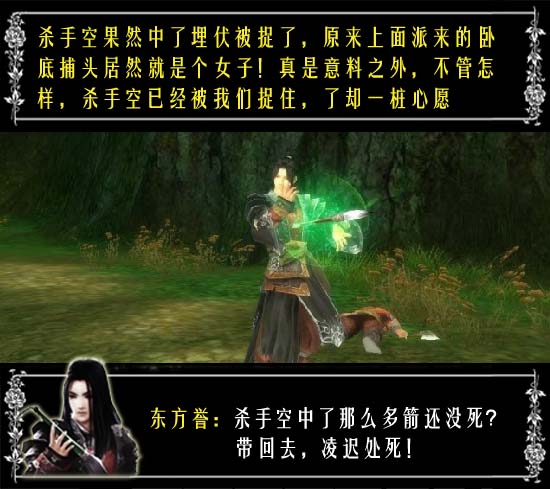 杀手空果然中了埋伏被捉了,原来上面派来的卧底捕头居然就是个女子!真是意料之外。不管怎样,杀手空已经被我们捉住,了却一桩心愿。尘音捕头立此大功,大家都加官进爵了。