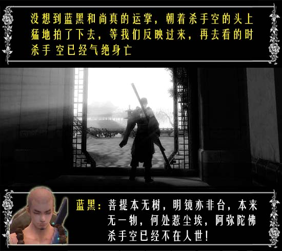 “菩提本无树,明镜亦非台,本来无一物,何处惹尘埃”蓝黑道,“阿弥陀佛,各位施主,杀手空已经不在人世!”