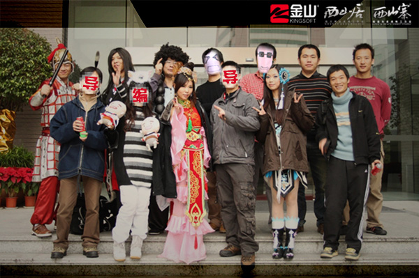 最后奉上和谐友爱视频创作团队“西山寨”全体幕前幕后工作人员大合影一张!可以看到我们的编导和两位小怪扮演者相当含蓄,相当神秘,相当……