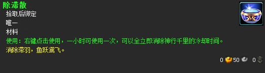 六、除滞散:一小时可使用一次,可以立即消除神行千里的冷却时间。