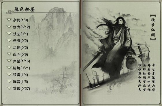 纷争江湖,永远不缺乏战斗。除了磨练技艺之外,自身经脉的修习也是必不可少。而各位侠客在不断提高的同时,隐元会也会记录下你的成长之路,并且记录你所获得的成就。只要勤加修炼,加上一点运气,这些成就将离你不在遥远!