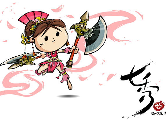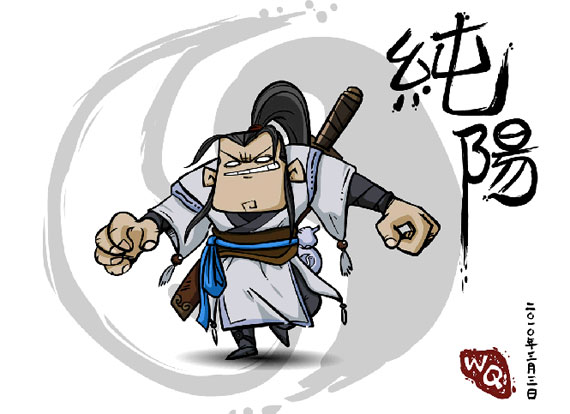 还是第一次跑到这边来发帖(还不大会捣鼓哩…),各位大侠多指教呀。贴两张自己画的图图呀,壁纸大小,1680x1250。嘿嘿,贱嗖嗖的纯阳是展昭画的,小七秀是我受他的启发画的。