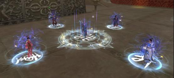 “阵临携众声起,重御掌控风来袭,升景轮回气汇集,封门闭关敛内力,连华冲出若雷劈,开眼之术破千骑。”这六字总决便是“碧空云雀鸣”的精髓所在。只见开阵之时,天际白光闪过,地面出现一巨大阵眼,说时迟那时快,手持不同阵法的几位大侠迅速站位,分别踩向阵眼附近的光圈,形成极具表现力的阵法图,以达成各种攻击、防御、增强、会心等效果。处处可见的光影配合精心设计的音乐,营造出一种悬疑气氛,勾人心弦。