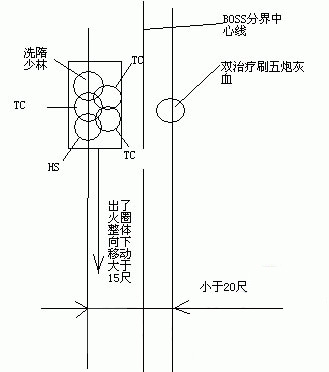化身最好是放两边,因为出了火圈后整个队伍会来回跑,两边炮灰路程远,所以需要2和和尚,整体逃脱火圈只需要1个技能,聂云(技能距离19尺)。